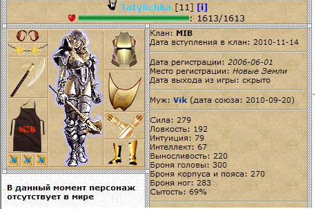 Самое интересное Tatylichkа, бывшая глава отдела культ массовых мероприятий, теперь находится в составе клана MIB, более того, она получила 11 уровень (видимо за свои заслуги перед админкой! :)))