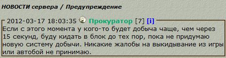 Сегодня Администратор сделал предуприждение игракам:
