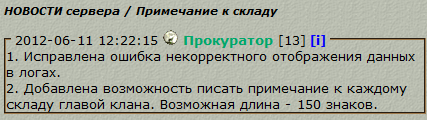 - новостная лента клана (обновление новостей должно производиться хотя бы раз в две недели);