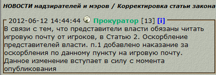 Примечание: при отсутствии оскорблений со стороны представителей власти в сторону игрока.