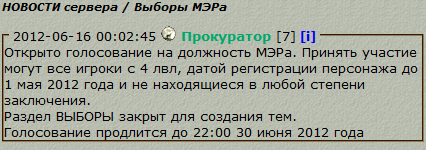 Победитель: FoxRider Приз победившему: временная склонность Боевой турнир с личными доспехами и магией Дата проведения: 2012-06-15 21:00 Боевой уровень участников: 10 Количество участников: