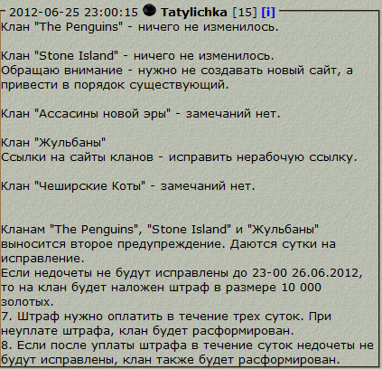 Была проведена поторная проверка клан сайтов. Результаты получились следуюшими: