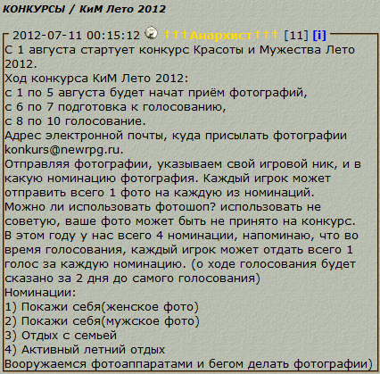 Сегодня стало известно что будет проводиться конкурс КИМ Лето 2012. О расписание и правилах конкурса можно узнать на форуме игры: